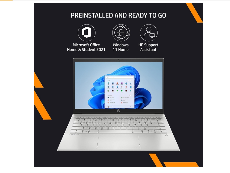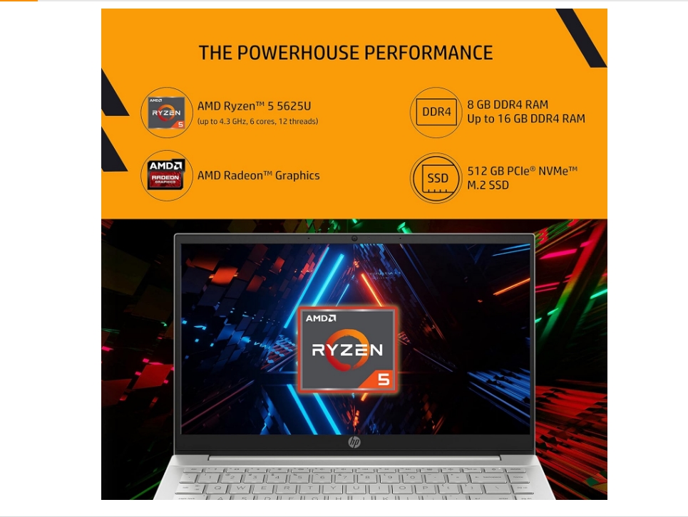 HP Pavilion 14, AMD Ryzen 5 5625U, 14-inch (35.6 cm), FHD, 8GB DDR4, 512GB SSD, AMD Radeon Graphics, Backlit KB, Audio by B&O, Thin & Light (Win 11, MSO 2021, Silver, 1.41 kg), ec1003AU