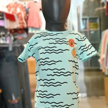 Green and blue printed T-shirt ,has a round neck, short sleeves