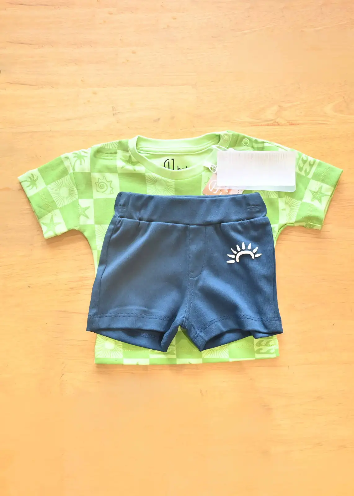 Gini & Jony Baby Girls Green Printed Cotton Half Sleeves Dress