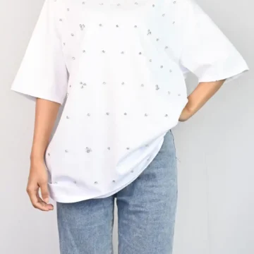 Women Stud Round Neck T-Shirt (Pearl Design)