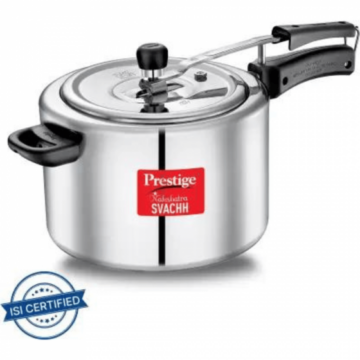 Prestige Nakshatra Svachh Aluminium Inner Lid Pressure Cooker with Unique Deep Lid for Spillage Control, 8 Litre, Silver (10741)