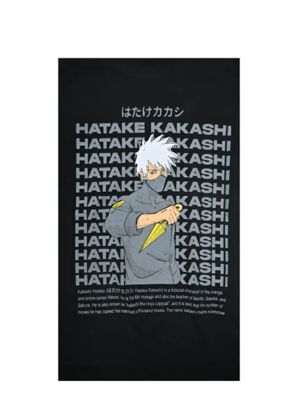 - Text: The text on the shirt reads “Kakashi Hatake” multiple times in different sizes and orientations, creating a visually interesting design.