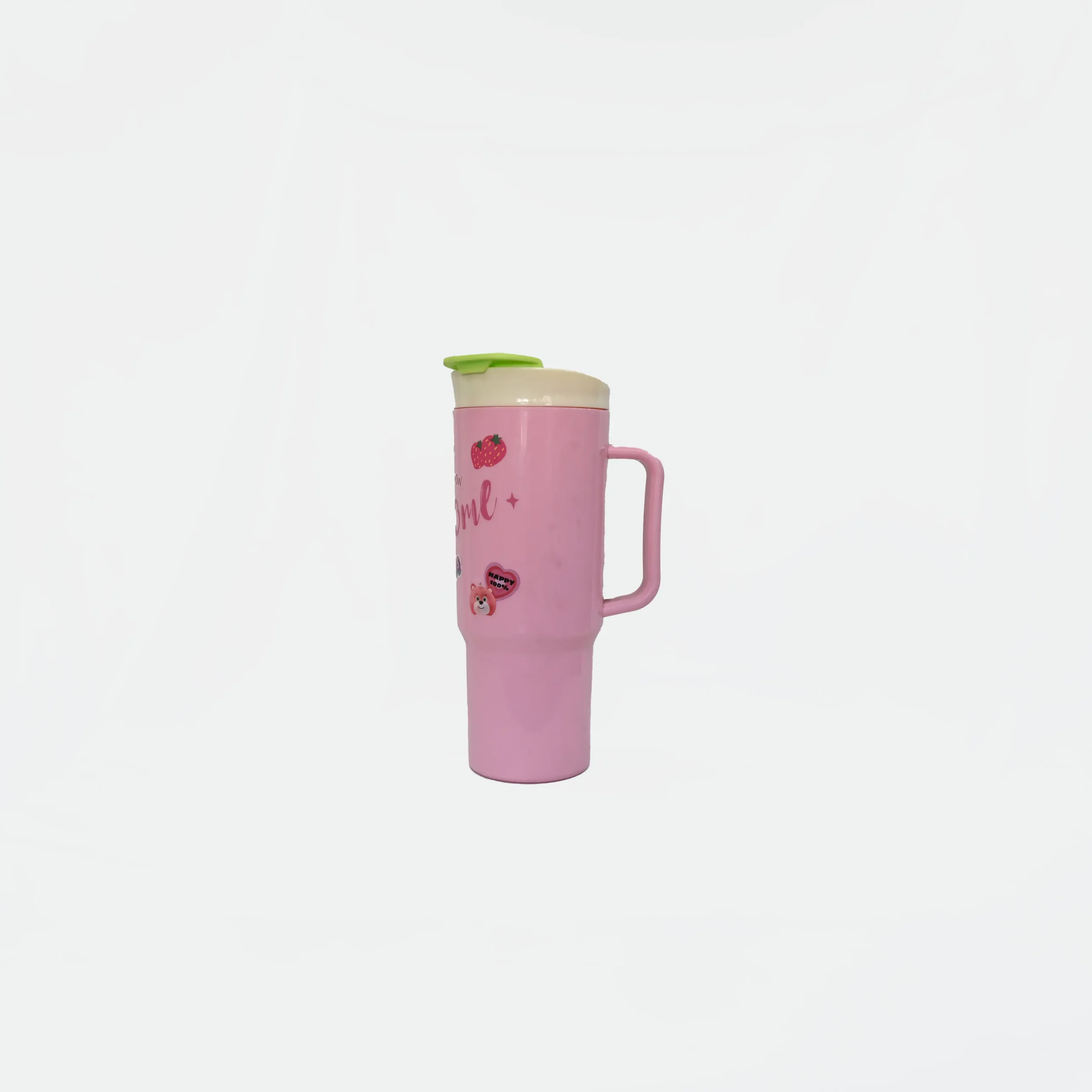 | Color | Pastel Pink body, Cream/White lid, Lime Green flip-cap |