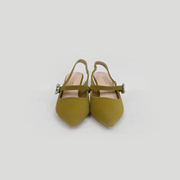 Ladamas Olive Green Pointed Toe Slingback Pumps with Embellished Buckle | Size 37 (27 cm)