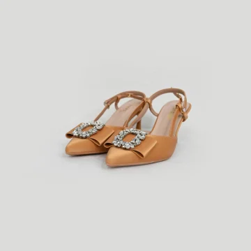 Ladamas Chestnut Brown Pointed Toe Slingback Pumps with Embellished Buckle | Size 37 (27 cm)
