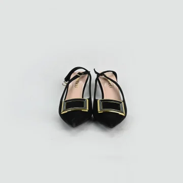 LADAMAS Black Suede Slingback Heels with Gold-Trimmed Buckle