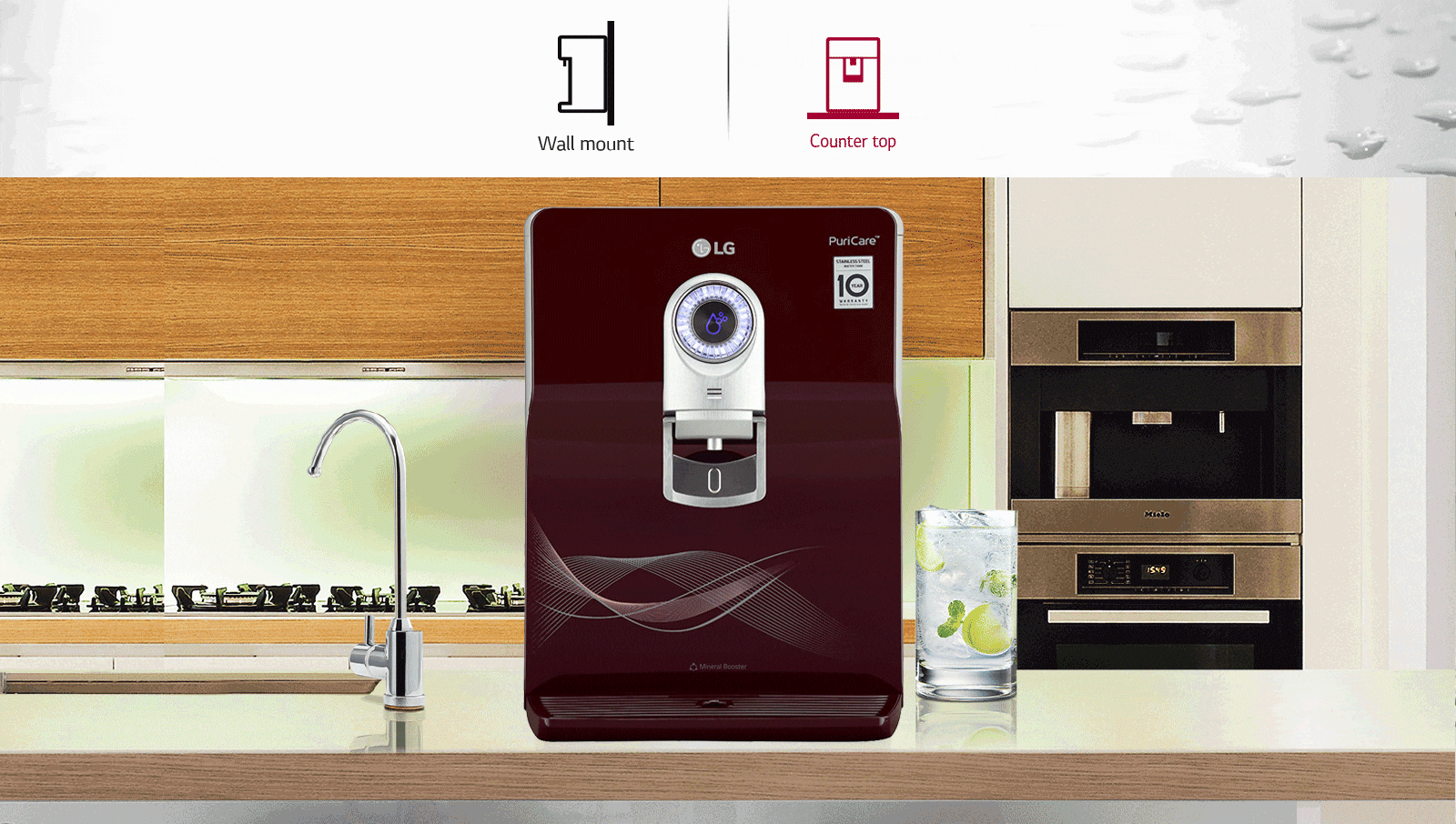 The LG water purifier’s Dual Protection Stainless Steel Water Tank, maintain freshness of water and reduce the growth of bacteria and algae. Far more hygienic than a conventional plastic tank, it ensures that water remains safe for drinking with Dual Protection Seal.