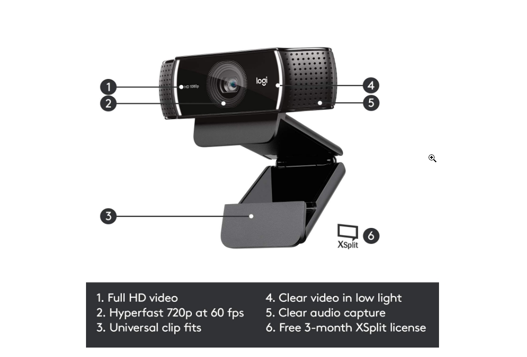 Logitech C922 Pro Stream Webcam, HD 1080p/30fps or HD 720p/60fps – Black (960-001090)