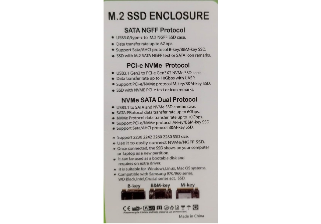 - Support Dual-Protocol NGFF/NVME M.2 SSD : M.2 SSD hard disk enclosure, compatible with different protocol M.2 SSD, supporting 4 cards size 2230/2242/2260/2280 of M.2 NGFF (SATA) and NVMe protocol hard drive and NVME SSD enclosure support M key and B+M key at the same time. High speed with 10Gbps read&write speed, save your time. And this external hard disk dive adapter can configure two addition hard drive enclosures, make your work more easier and efficient.