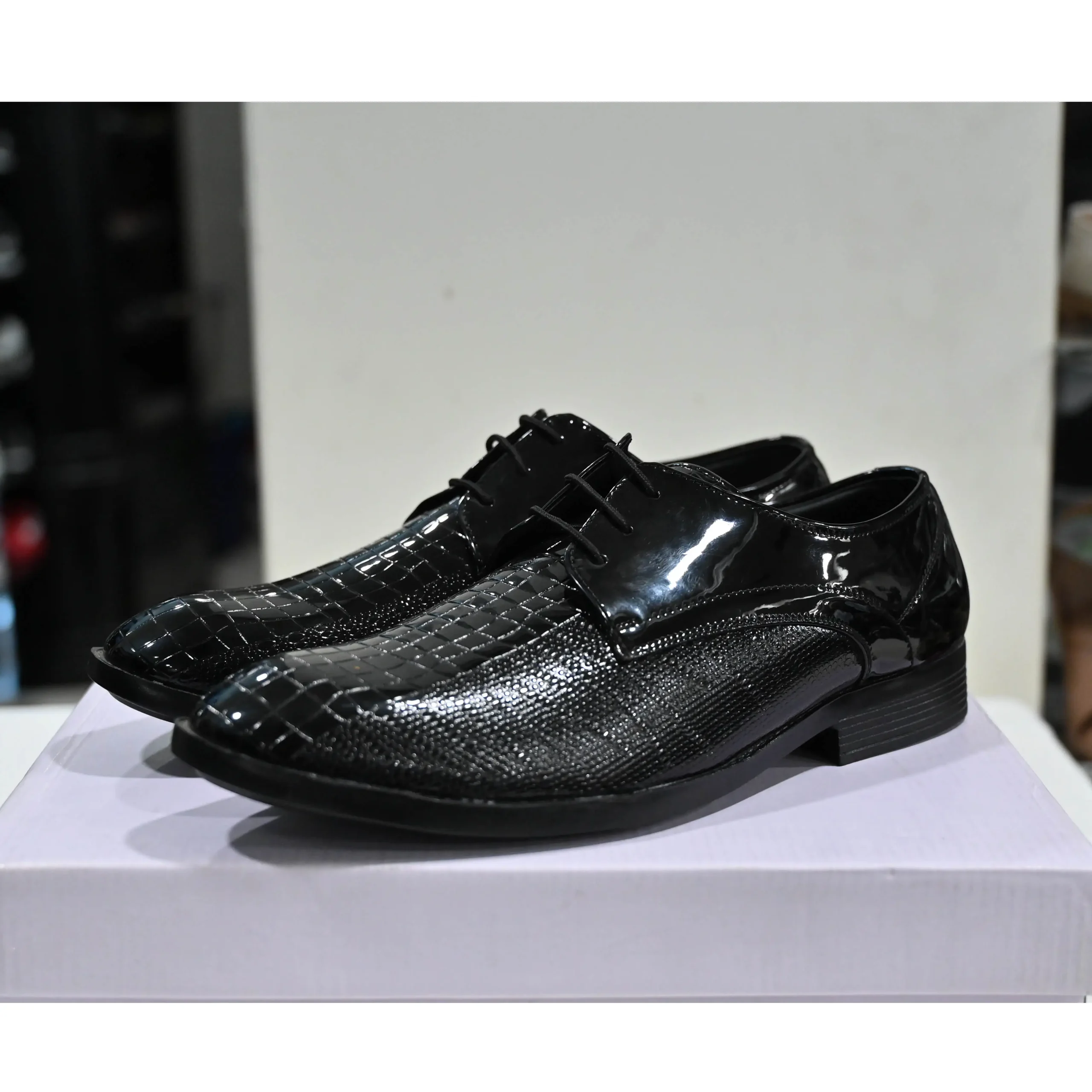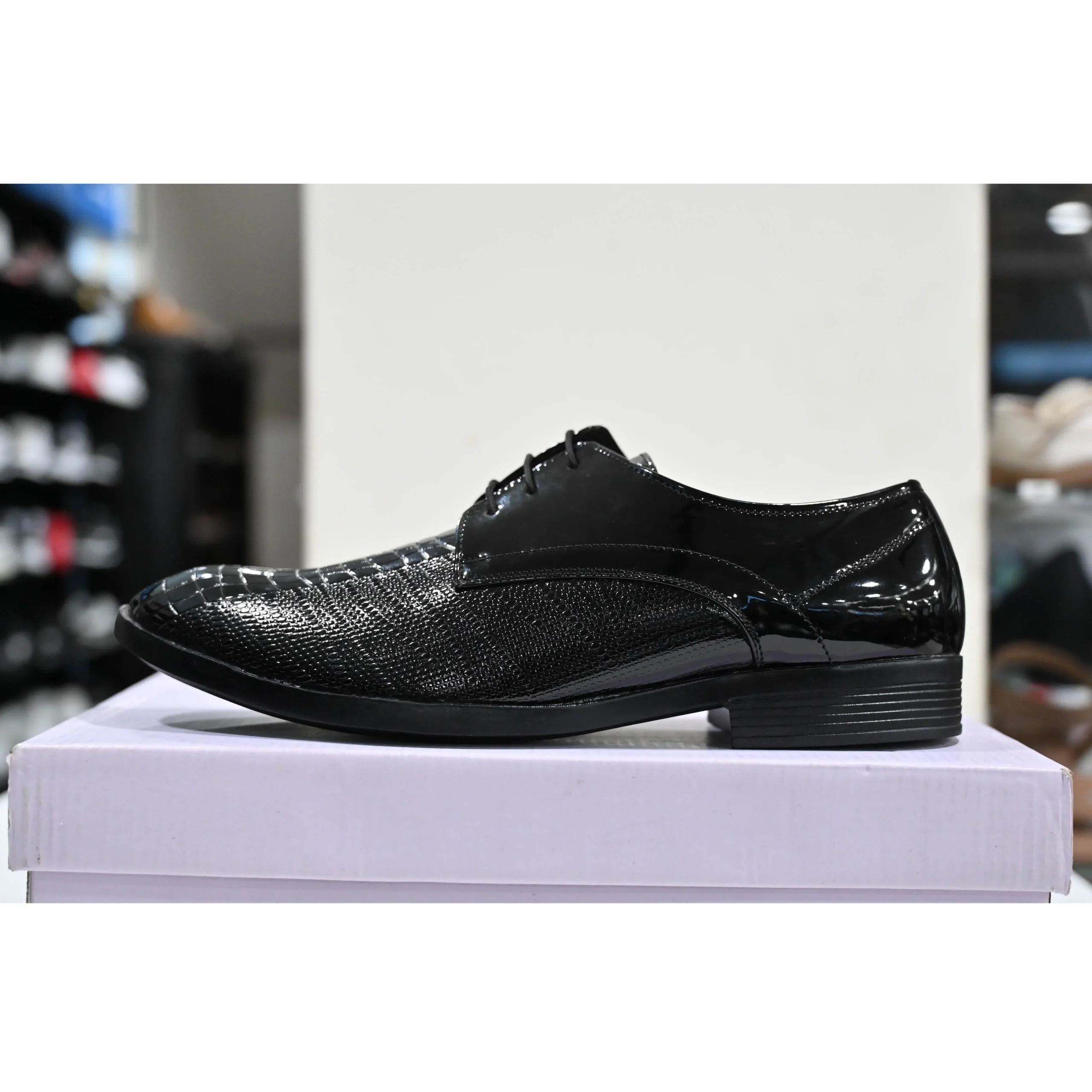 Stylish crocodile-patterned patent leather upper