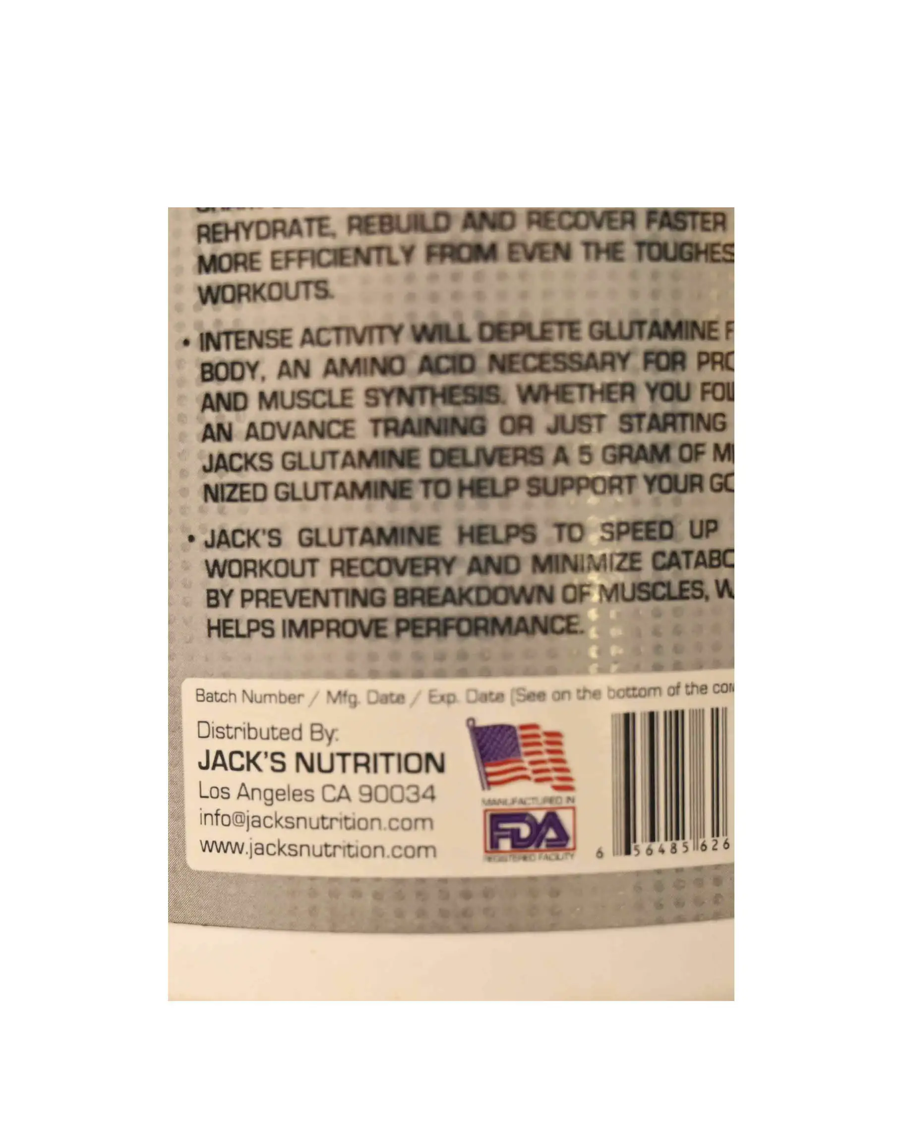 Product Details: PUREST GLUTAMINE: With every serving of JACKS Glutamine, you get 5g of L-Glutamine that helps in boosting the recovery process and restricts muscle breakdown. Glutamine helps to gain lean muscle mass by keeping the cells hydrated during intense workouts. Glutamine can help improves performance and prevent injuries while also improving immunity. BETTER AND FASTER RECOVERY: JACKS Glutamine helps in enhancing the response of the immune system and ensures that you don’t face any breaks in your workout routine. Experience faster and better recovery with JACKS Glutamine and improve your performance with ardent training sessions.educe muscle fatigue, and promote muscle protein synthesis, lean muscle mass and superior recovery post intense physical activity. ULTRA GRANULATED POWDER: JACKS micronized Glutamine is an amino acid supplement that helps in muscle synthesis during intense workouts. This product is free from any kind of adulteration and contains micro-filtered L-Glutamine that your muscles are easily able to absorb and show better results. SCOOP – SHAKE – SIP: Mix 1 scoop with 100-200 ml of water. Drink during or post exercise on training days or after any sport event for good recovery. For best results, use 2 scoops on training days, one post workout and one at bed time.