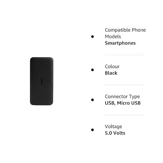 Redmi 20000mAh Li-Polymer Power Bank,USB Type C and Micro USB Ports With 18W Fast Charging & Low Power Mode (Black)