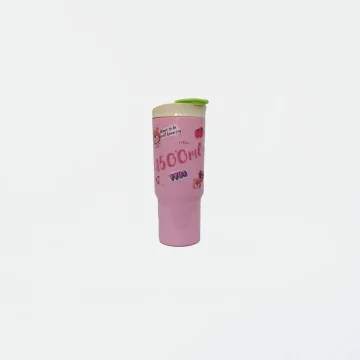 Kawaii Pink Hydration Tumbler, Straw Sipper Mug | Mega Pink Sticker Style Travel Mug | Water Bottle 1500 ml