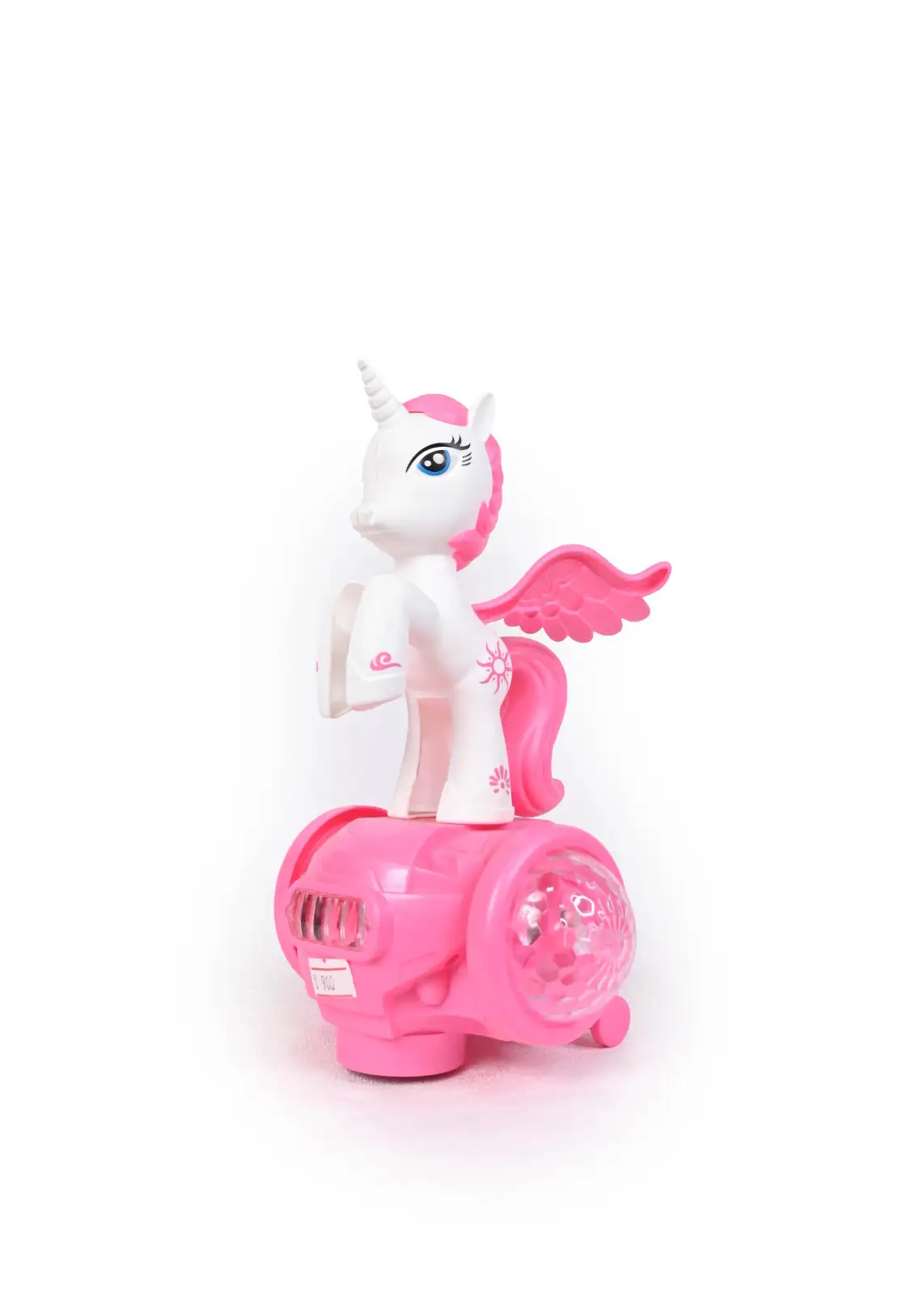 360 Degree Rotating Musical Dancing Unicorn Toy is an enchanting and entertaining playtime companion designed for kids, both boys and girls, as well as children of various ages. This whimsical toy features a captivating unicorn figure that not only rotates a full 360 degrees but also dances to lively musical tunes, creating a magical and dynamic play experience. With its vibrant colors and charming design, this toy is sure to capture the imagination of children. The rotating feature adds an extra element of excitement, allowing the unicorn to spin around, creating a visually engaging spectacle for young ones. The musical component enhances the overall sensory experience, providing auditory stimulation and fostering a sense of joy and playfulness.