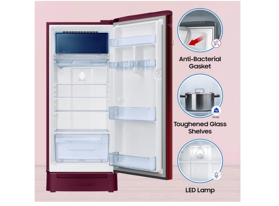 Samsung 215 Litres Single Door Refrigerator, 5 Star Inverter, Direct-Cool (Midnight Blossom Red)(2023 Model)(RR23C2H35RZ/HL)