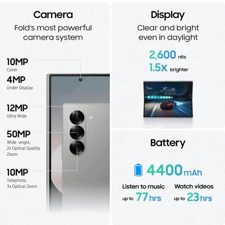 Samsung Galaxy Z Fold6 5G AI Smartphone (12GB RAM, 512GB Storage)