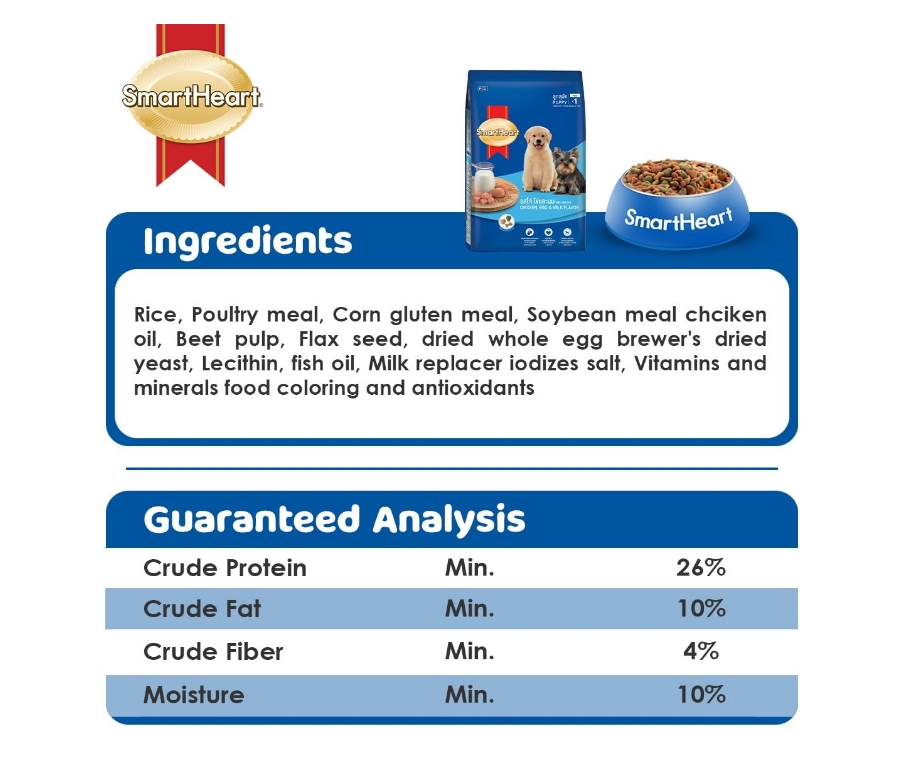 SmartHeart Puppy Dry Dog Food Chicken Egg and Milk Flavour, 1.3 kg