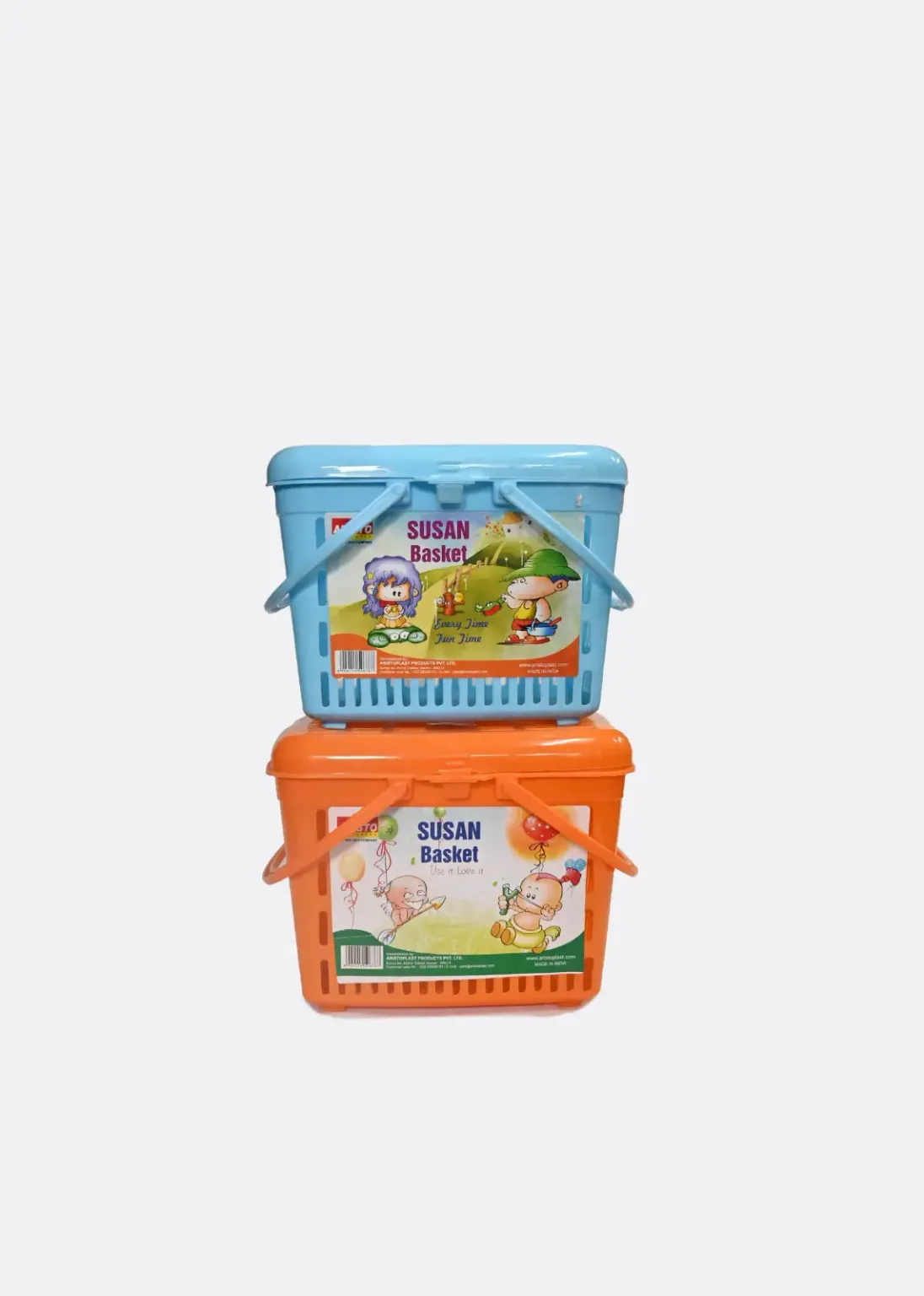 The Susan Basket is a versatile and convenient storage solution for your home. These durable plastic baskets feature a classic basket-weave design and handles for easy carrying. Perfect for organizing toys, clothes, or other belongings, these baskets are a great way to keep your space tidy and organized. The bright colors add a cheerful touch to any room, making them a stylish and functional addition to your home.
