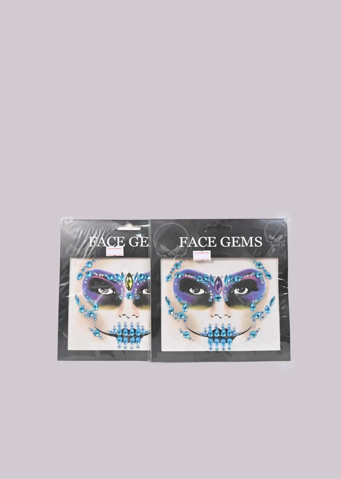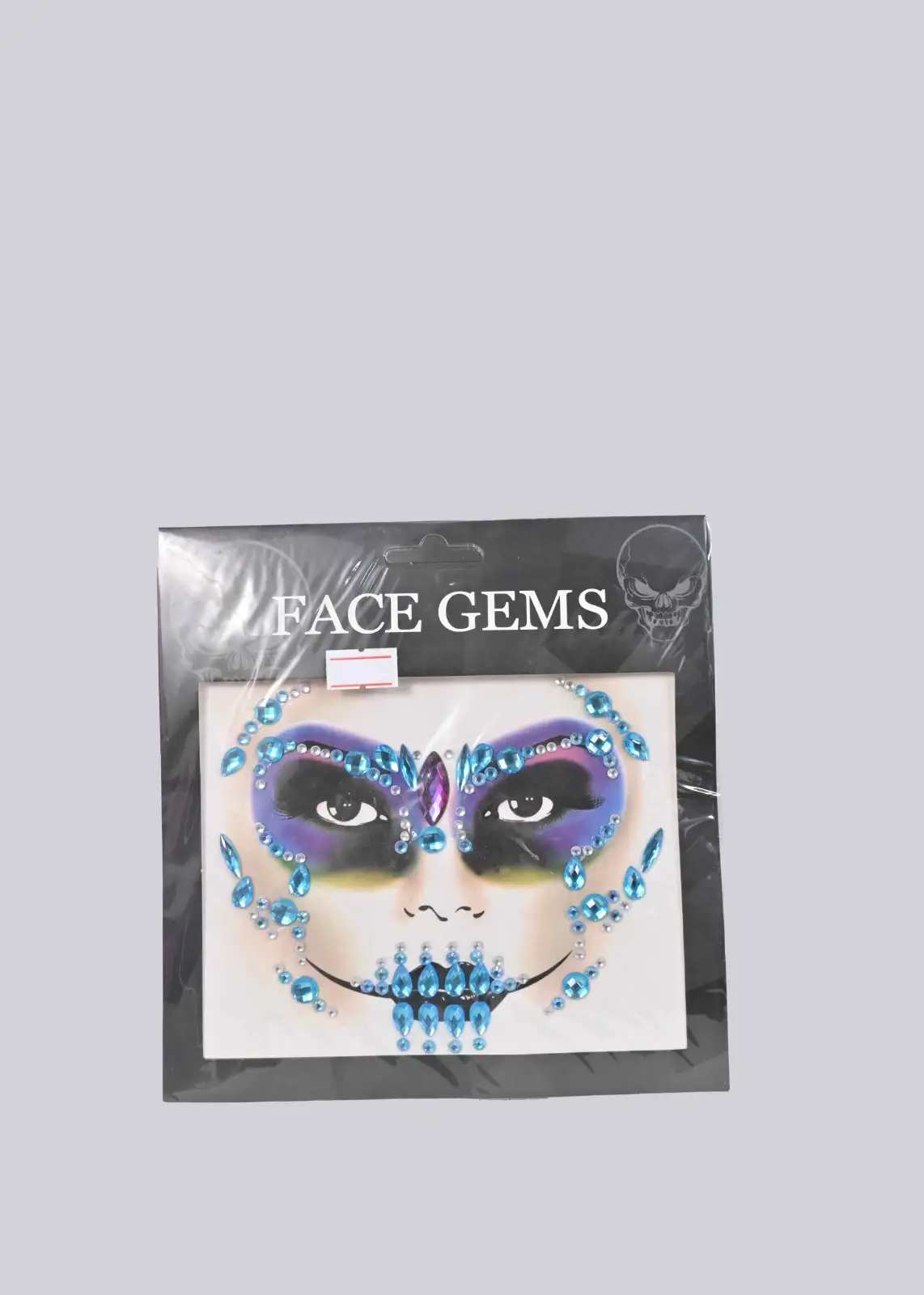 - DIY Your Own Halloween Face Gems – The leoars skeleton face jewels are all connected with a clear gelatin like sticky pad that can be removed in one piece and stuck onto your face.You can use scissors or a blade to cut off any of the jewels you don’t need or to change the pattern as needed or wanted for your own style body jewels.