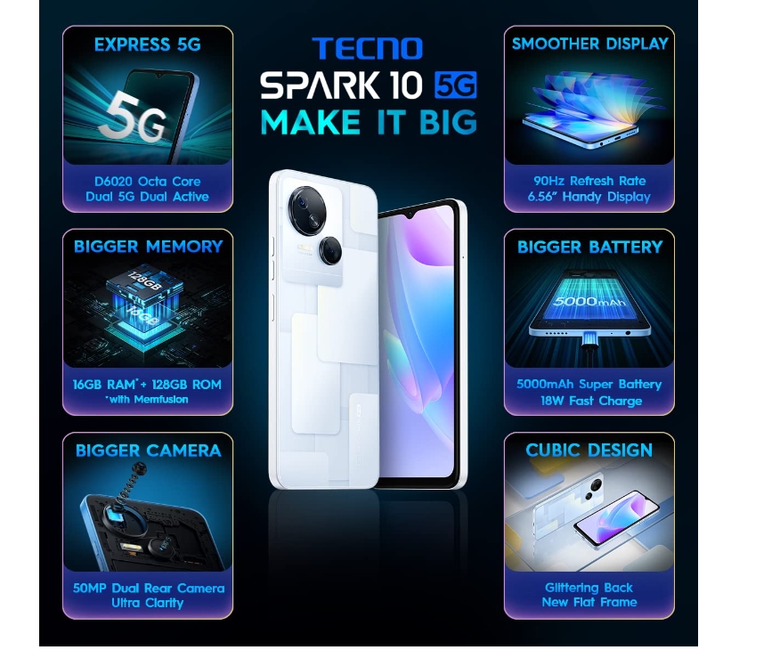 TECNO Spark 10 5G Meta White (8GB RAM,128GB Storage)