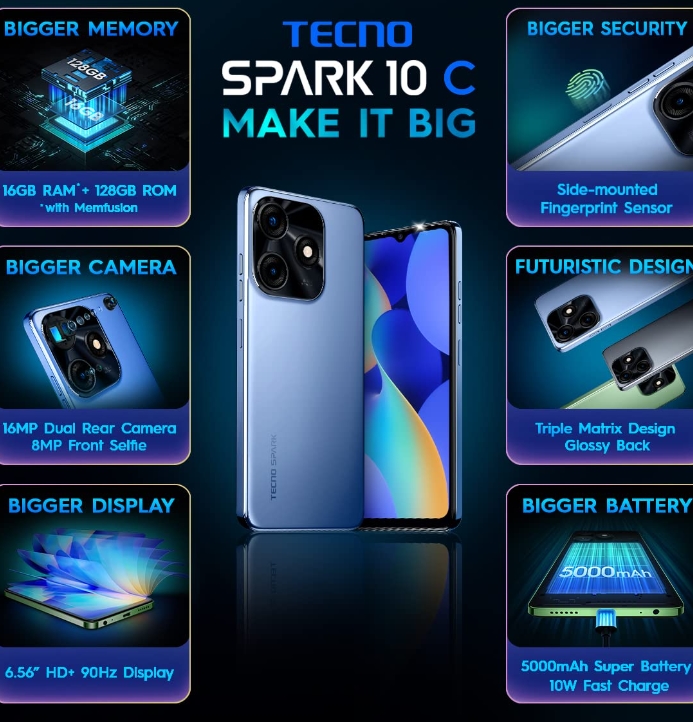 TECNO Spark 10C(8GB RAM,128GB Storage)(Magic Skin Blue)