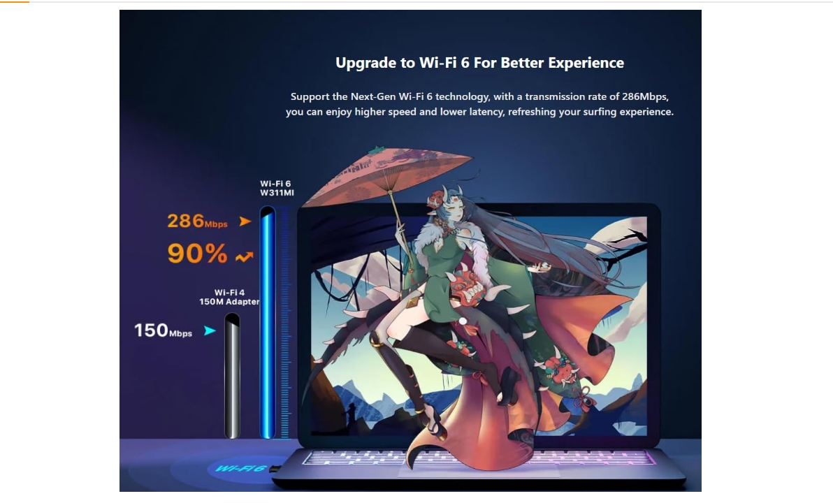 - Support the Next-Gen Wi-Fi 6 technology, with a transmission rate of 286Mbps, you can enjoy higher speed and lower latency