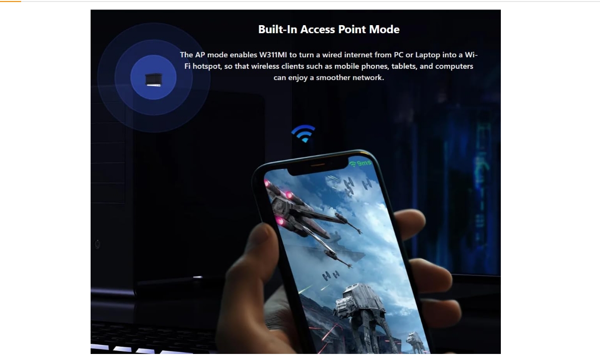 - The AP mode enables W311MI-V6 to turn a wired internet from PC or Laptop into a Wi-Fi hotspot, so that wireless clients such as mobile phones, tablets, and computers can enjoy a smoother network