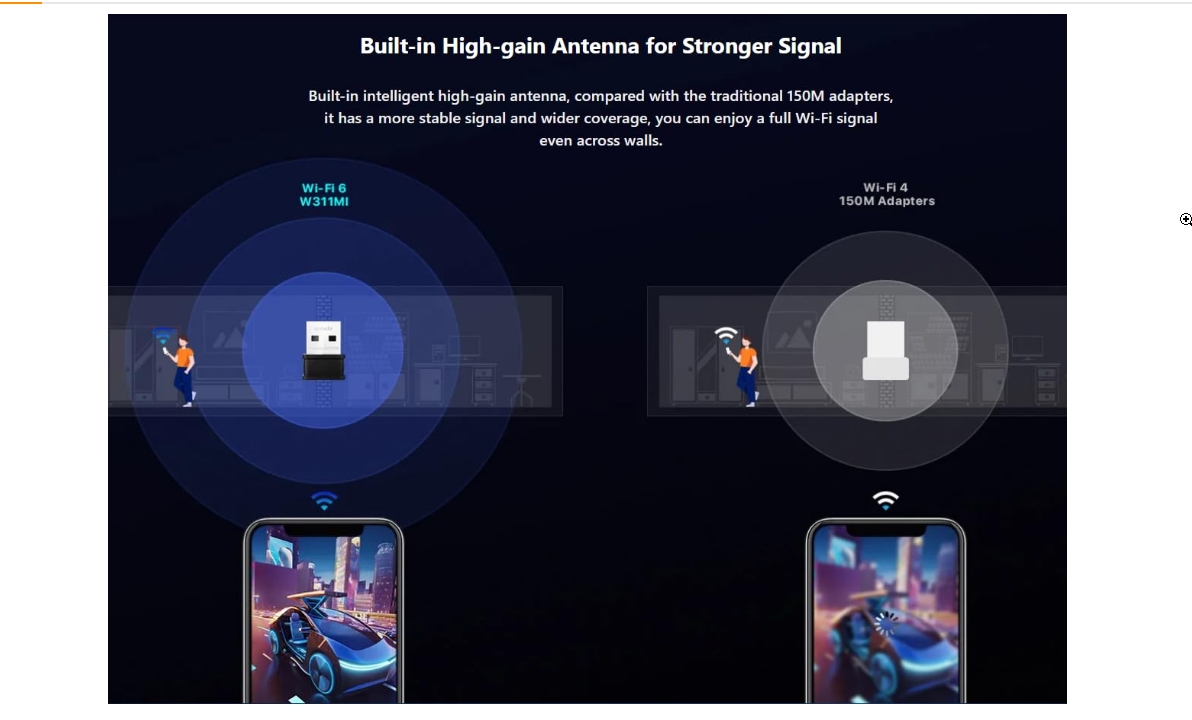 - Built-in intelligent high-gain antenna, compared with the traditional 150M adapters, it has a more stable signal and wider coverage