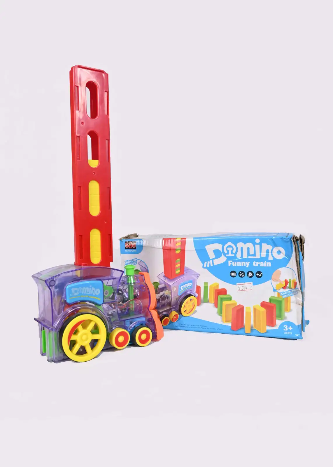 A domino train is a toy that consists of a set of small rectangular tiles, or “dominoes”, that are set up in a line or a pattern, which when pushed or knocked over, will fall in a chain reaction. The dominoes are usually made of plastic, and can come in a variety of colors.They can be played by individuals or groups, and are a fun and interactive toy for people of all ages.