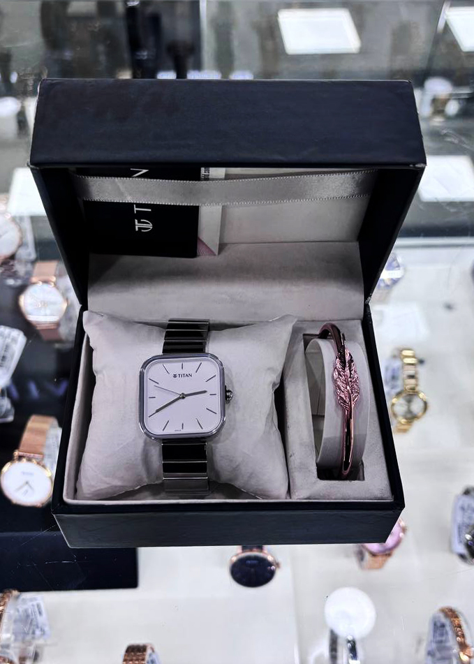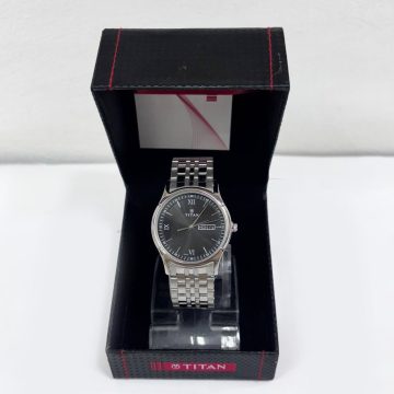 Titan Quartz Analog with Day and Date Black Dial Metal Strap Watch for Men