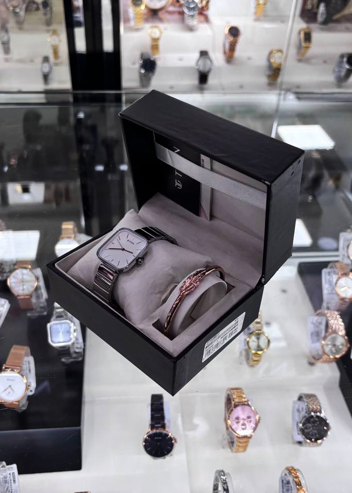 Titan Purple Stackables Quartz Analog White Dial Stainless Steel Strap Watch for Women