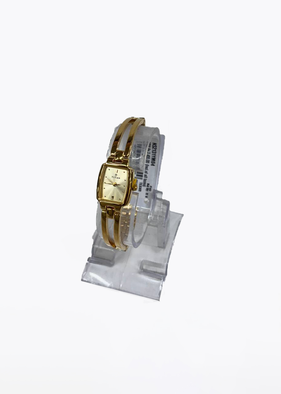 Titan Quartz Analog Champagne Dial Stainless Steel Strap Watch for Women