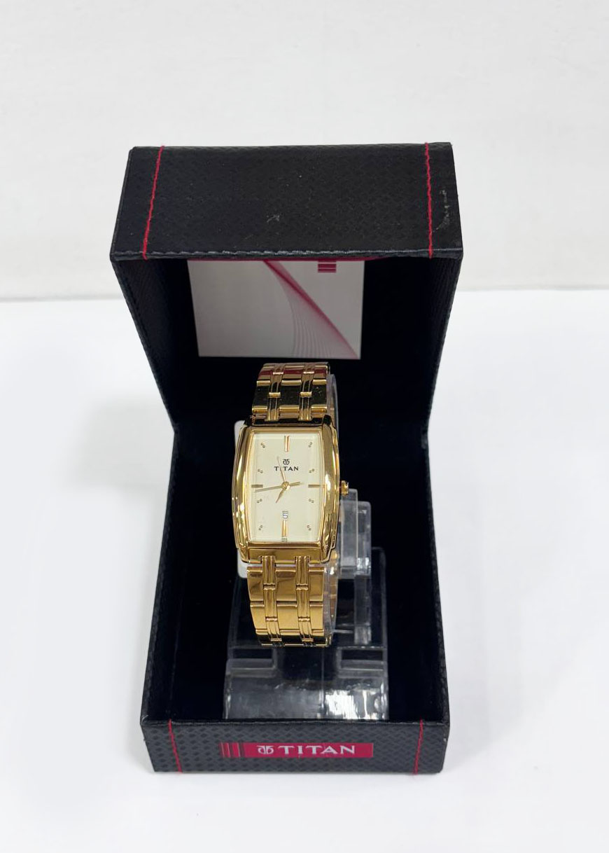 Titan Quartz Analog with Date Champagne Dial Stainless Steel Strap Watch for Men