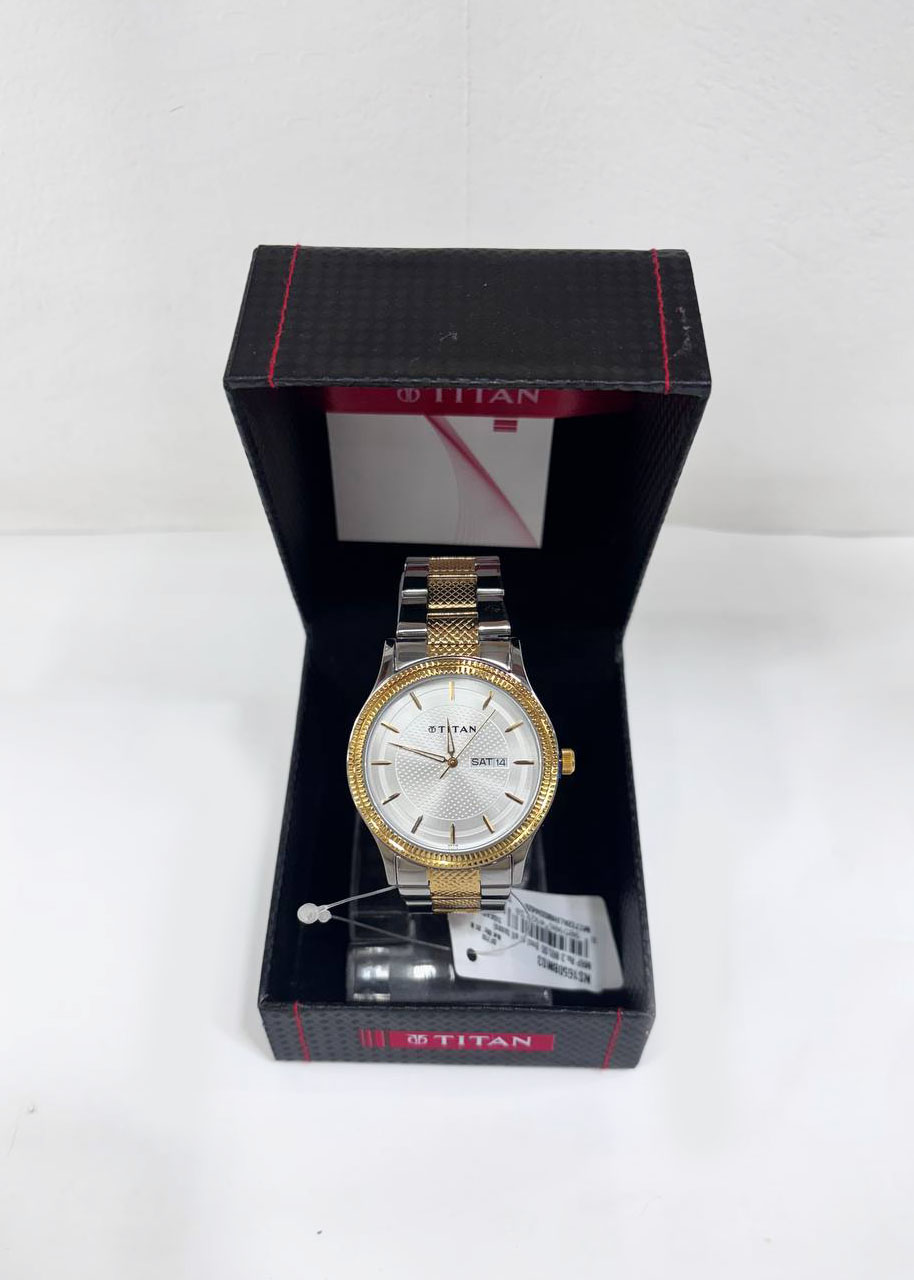 Titan Quartz Analog with Date Silver Dial Stainless Steel Strap Watch for Men