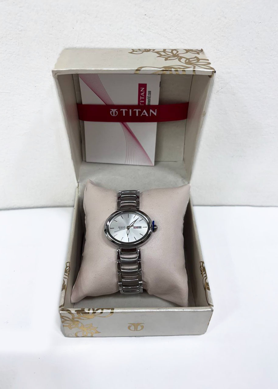 Titan Raga Viva Silver Dial Analog with Day and Date Metal Strap Watch for Women