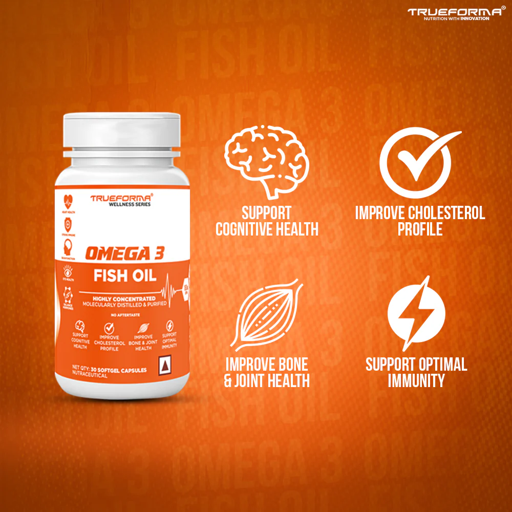 - Trueforma triple strength Omega 3 Fish Oil provides the best source of EPA & DHA for a healthier heart, brain, skin, mood, joints & gut. In short a 360 Degree of protection to your body & immune.