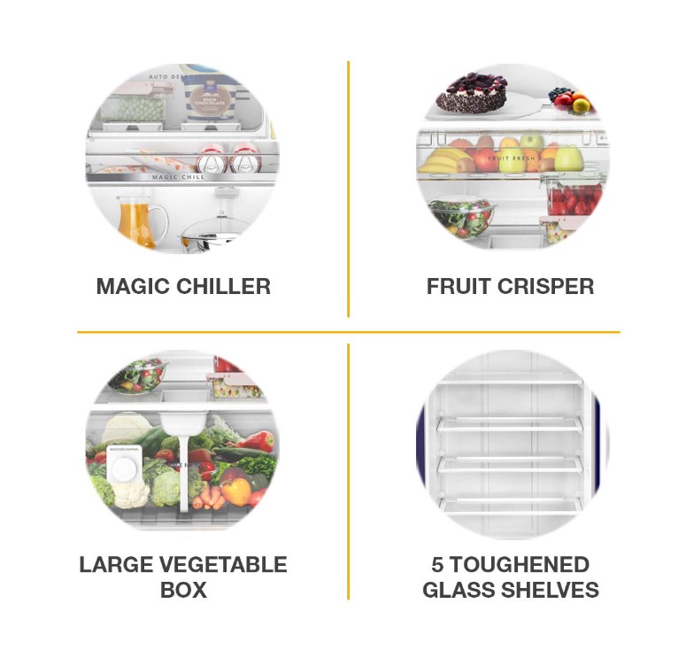 Whirlpool refrigerators come with sturdy and durable toughened glass shelves that are built to take the load of your everyday needs