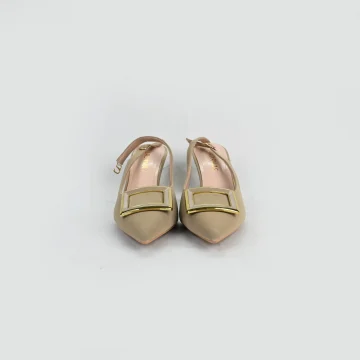LADAMAS Nude Slingback Pumps with Gold-Trimmed Buckle and Clear Detail