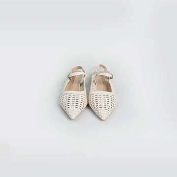 Ivory Weave Slingback Kitten (Off white) Heels for women Size 38, (23.8 cm)