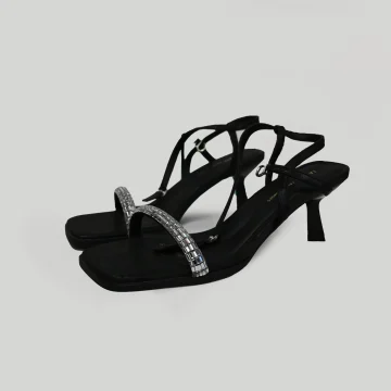 Women’s Black Rhinestone Strap Heel Sandals